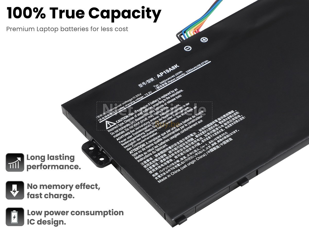 Niets, behalve dat onze Acer AP19A5K batterij geen merk of label heeft. Consumenten achten de oorspronkelijke laptop accu van Apple, Dell, Toshiba en Hewlett-Packard vaak als de voordelen van een merknaam. Eigenlijk gebruiken ze ook de componenten van een derde partij. We maken onze accu’s eveneens met dezelfde accucellen en printplaat, maar we vervaardigen onze eigen huls en de kosten van de waarde aan het merk verlagen. Daarom consumenten laptop accu van wereldniveau die dezelfde met originele versie is kunnen kopen tegen een veel lage prijs.Kan mijn Acer AP19A5K laptop accu verschillende capaciteiten gebruiken?
