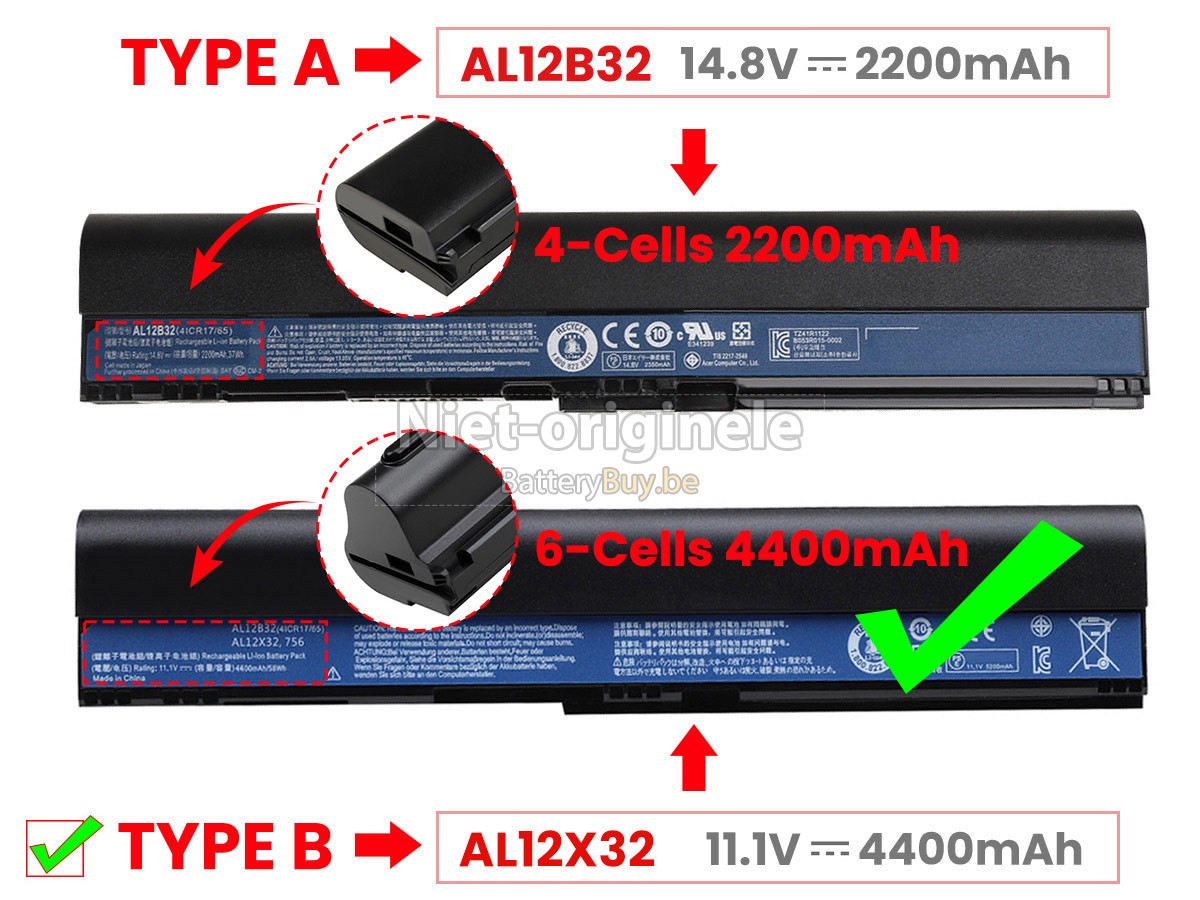 Al onze accu's zijn gloednieuw. We verkopen nooit accu dat oud, tweedehands of gerenoveerd is. We gebruiken allen de beste accucellen en componenten om uw zekerheid en ervaring te beschermen.Is er iets anders tussen jouw Acer Aspire V5-171-6614 accu en die van OEM?