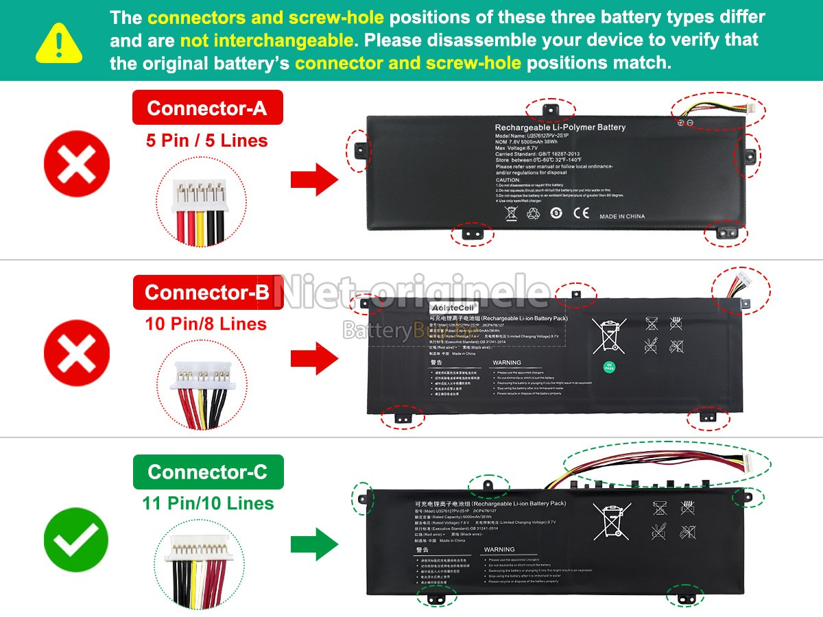 Laat u niet misleiden door valse advertenties! Al onze batterijen worden strikt gecontroleerd. Zij overeenstemmen of even overtreffen met de prestaties van originele batterijen.