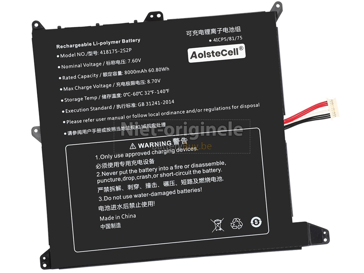 Alle batterijen die we aan de Alldocube GTBOOK 13 PLUS leverde hebben internationaal certificering genoemd (CE, UL, ROHS, ISO, 9001 / 9002).