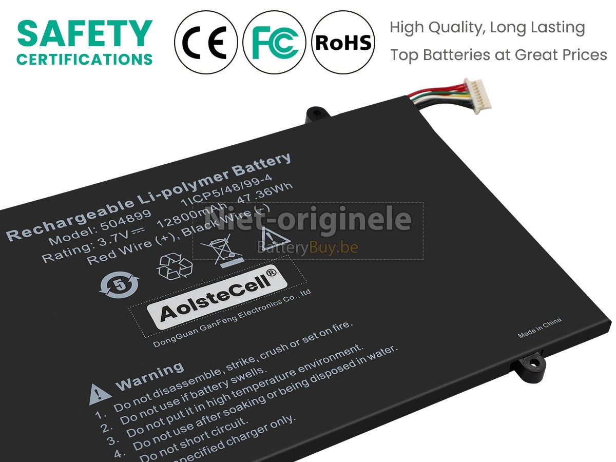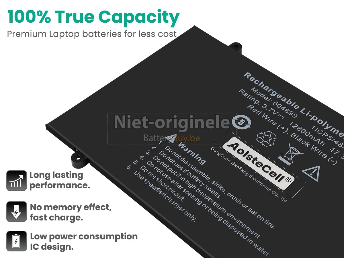 Al onze accu's zijn gloednieuw. We verkopen nooit accu dat oud, tweedehands of gerenoveerd is. We gebruiken allen de beste accucellen en componenten om uw zekerheid en ervaring te beschermen.Is er iets anders tussen jouw AolsteCell 504899 accu en die van OEM?