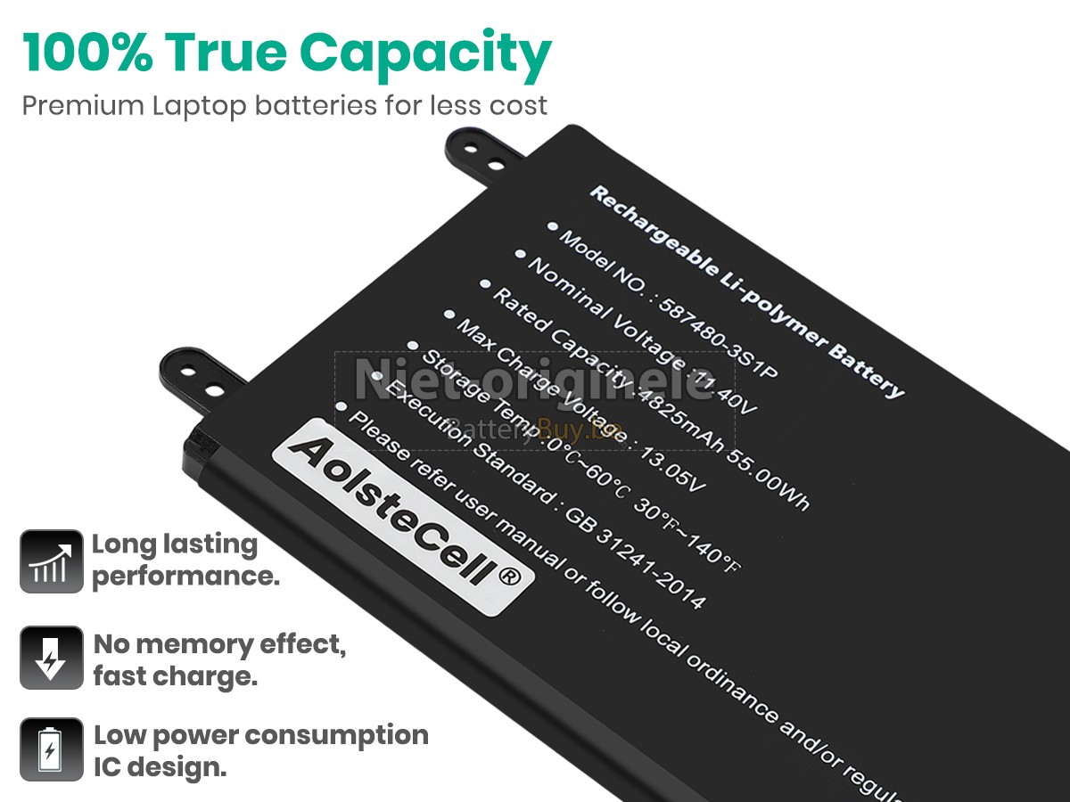 Al onze accu's zijn gloednieuw. We verkopen nooit accu dat oud, tweedehands of gerenoveerd is. We gebruiken allen de beste accucellen en componenten om uw zekerheid en ervaring te beschermen.Is er iets anders tussen jouw AolsteCell 587480-3S1P accu en die van OEM?