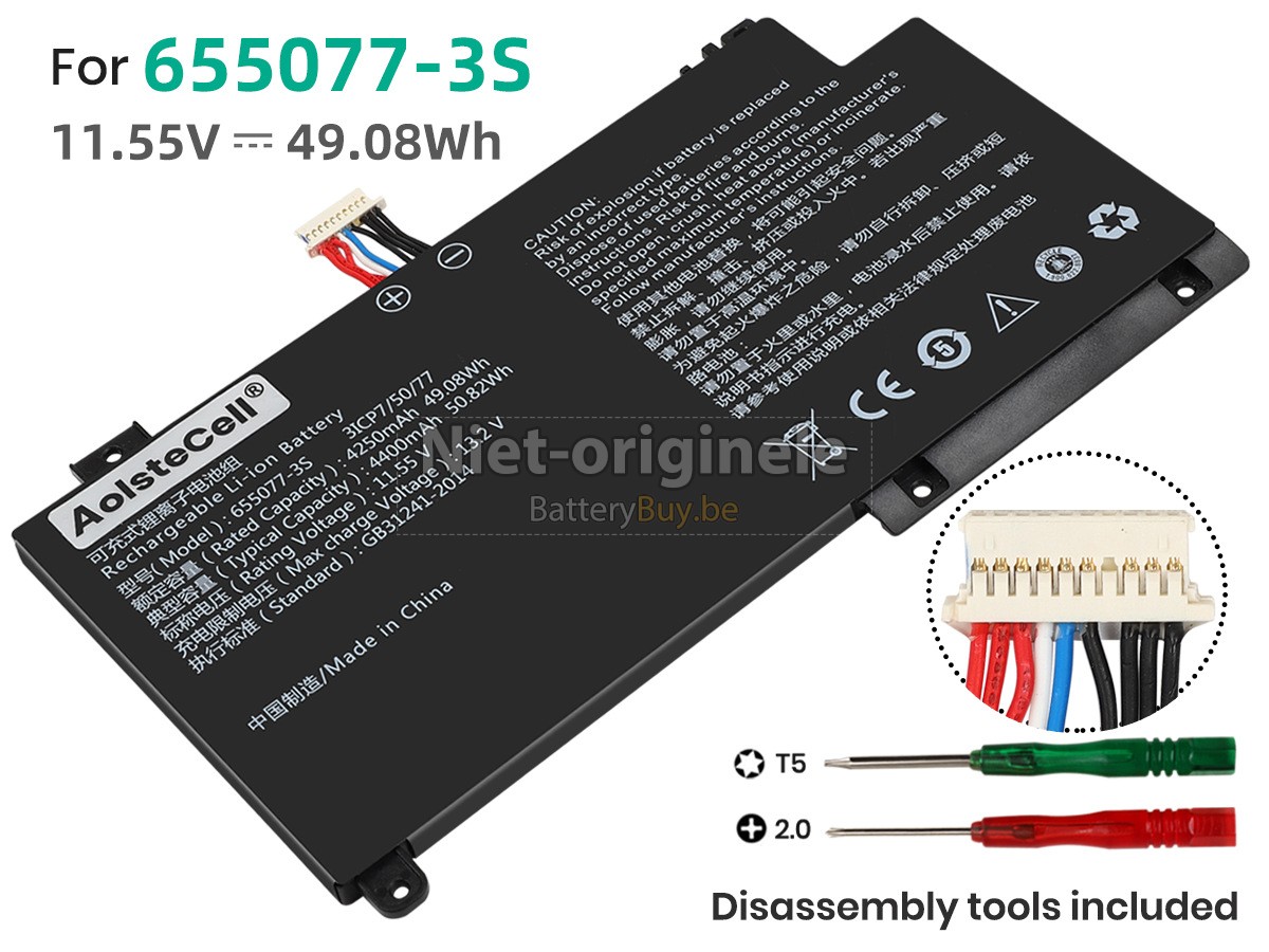 AolsteCell 655077-3S Accu Compatibele Onderdeelnummers