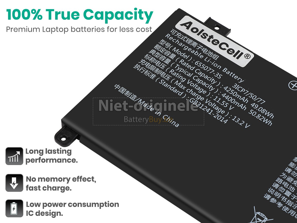 Al onze accu's zijn gloednieuw. We verkopen nooit accu dat oud, tweedehands of gerenoveerd is. We gebruiken allen de beste accucellen en componenten om uw zekerheid en ervaring te beschermen.Is er iets anders tussen jouw AolsteCell 655077-3S accu en die van OEM?