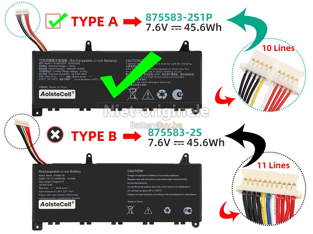 Al onze accu's zijn gloednieuw. We verkopen nooit accu dat oud, tweedehands of gerenoveerd is. We gebruiken allen de beste accucellen en componenten om uw zekerheid en ervaring te beschermen.Is er iets anders tussen jouw AolsteCell 875583-2S1P accu en die van OEM?
