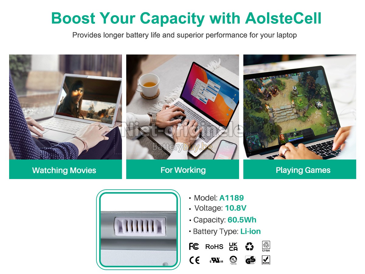 Laat u niet misleiden door valse advertenties! Al onze batterijen worden strikt gecontroleerd. Zij overeenstemmen of even overtreffen met de prestaties van originele batterijen.
