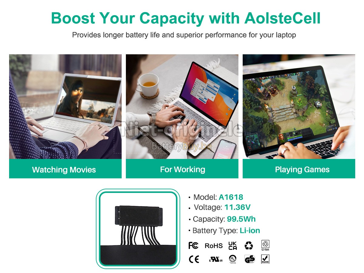 Laat u niet misleiden door valse advertenties! Al onze batterijen worden strikt gecontroleerd. Zij overeenstemmen of even overtreffen met de prestaties van originele batterijen.