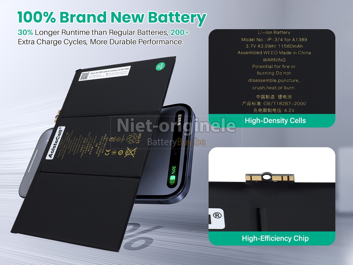 Laat u niet misleiden door valse advertenties! Al onze batterijen worden strikt gecontroleerd. Zij overeenstemmen of even overtreffen met de prestaties van originele batterijen.