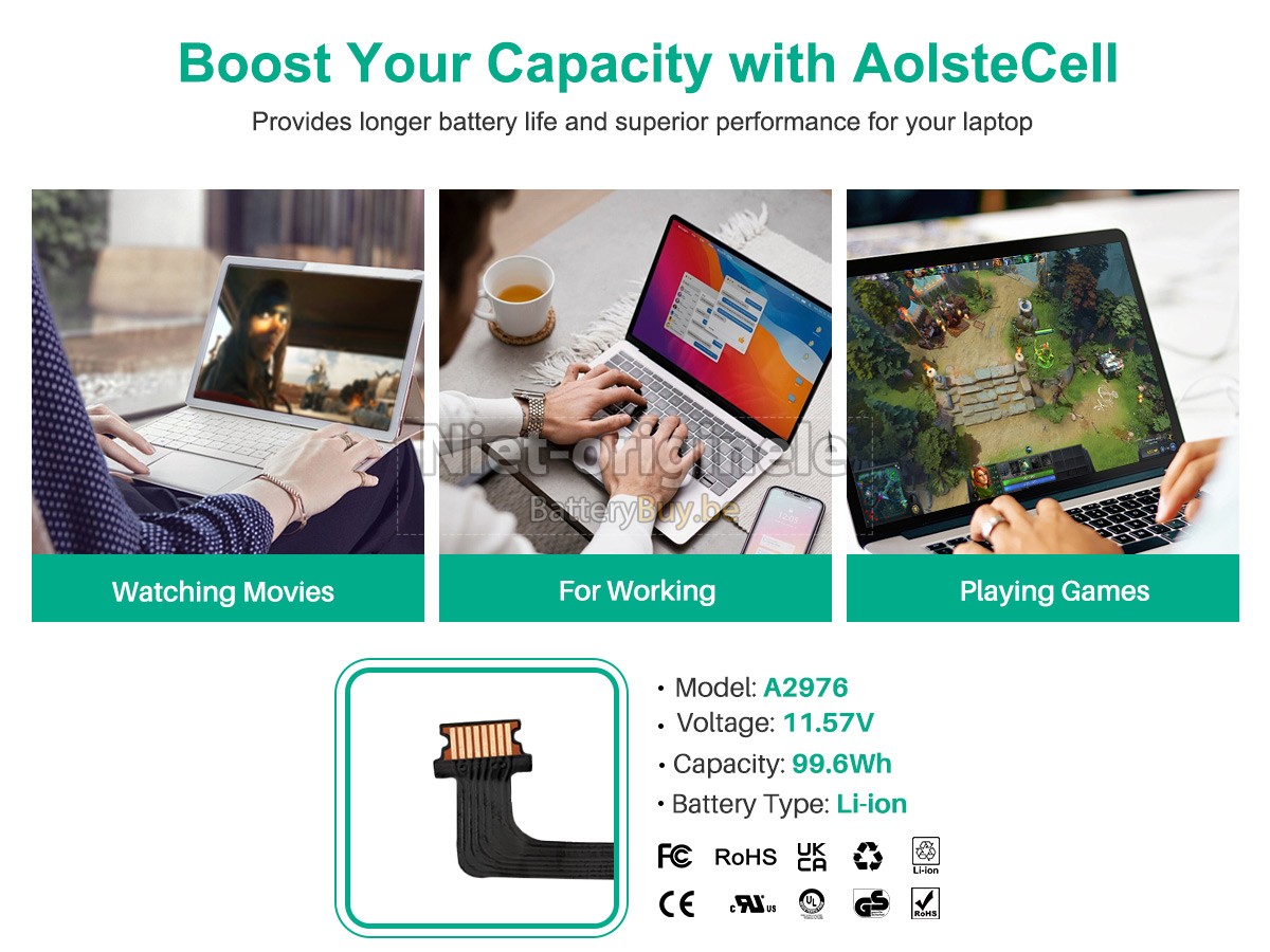 Al onze accu's zijn gloednieuw, 100% compatibel en halen OEM-maatregels voor veiligheid en efficiëntie.