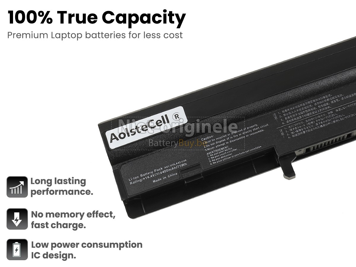 De printplaat heeft een ingebouwde intelligente controlechip, de Asus A41-U36 accu kan werken met snellere acculading, minder vermogensverlies en langere ontlaadtijd.