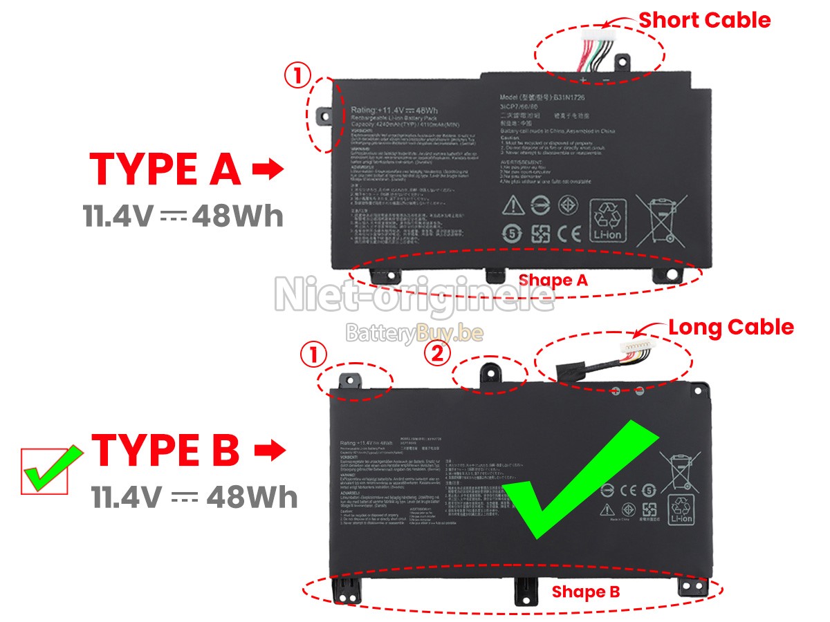 Asus B31N1726 Accu Compatibele Onderdeelnummers