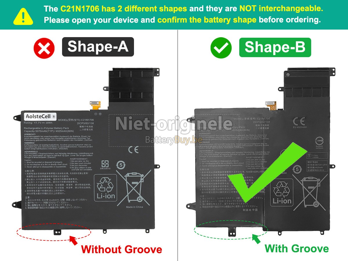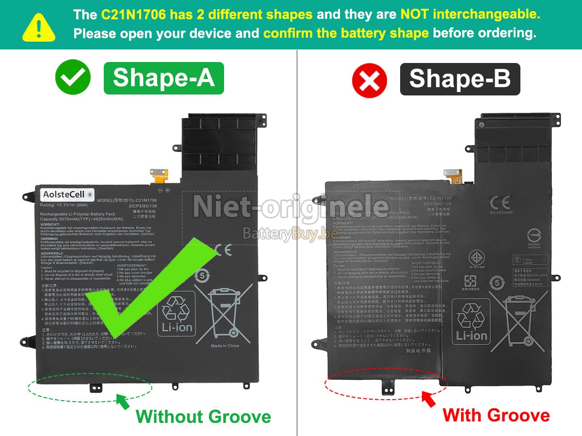 Al onze accu's zijn gloednieuw. We verkopen nooit accu dat oud, tweedehands of gerenoveerd is. We gebruiken allen de beste accucellen en componenten om uw zekerheid en ervaring te beschermen.Is er iets anders tussen jouw Asus C21N1706(2ICP3/82/138) accu en die van OEM?