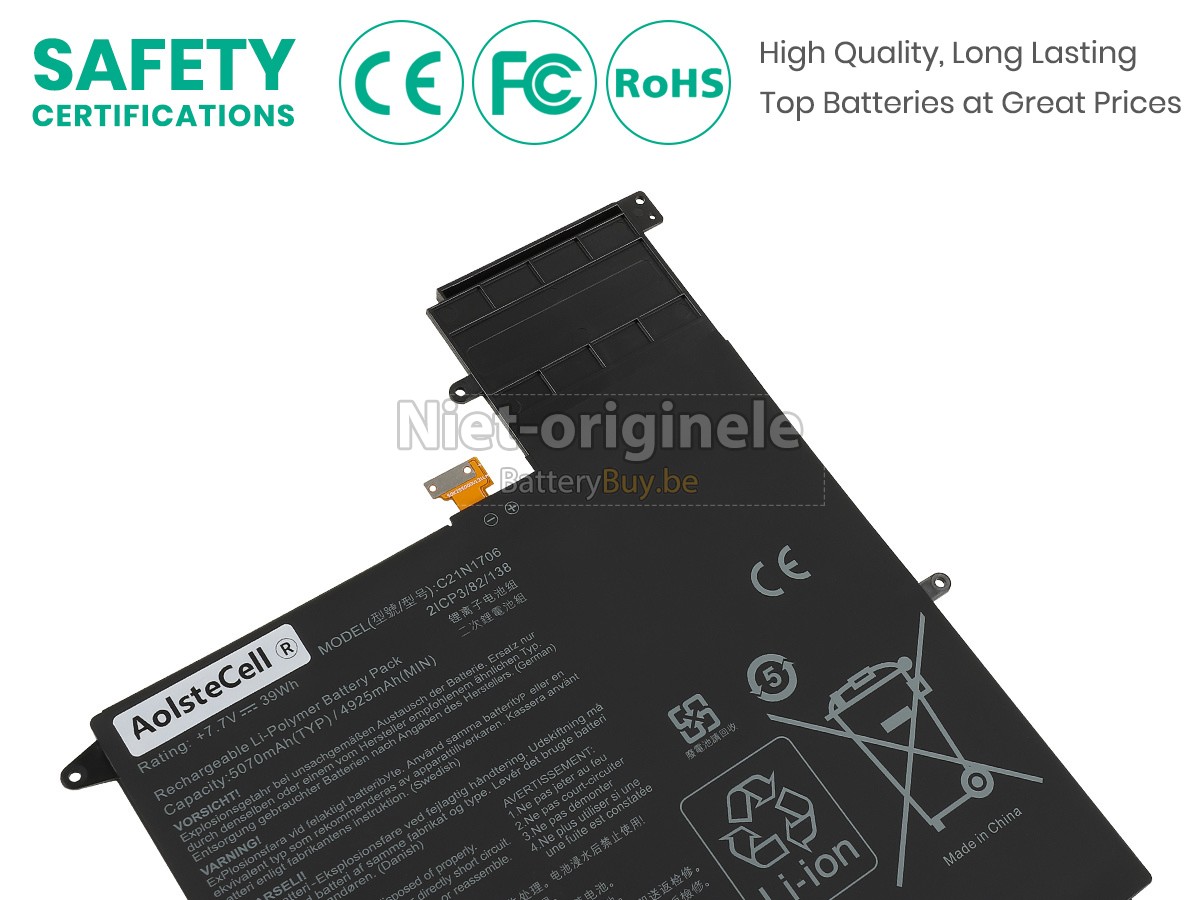 Alle batterijen die we aan de Asus C21N1706(2ICP3/82/138) leverde hebben internationaal certificering genoemd (CE, UL, ROHS, ISO, 9001 / 9002).