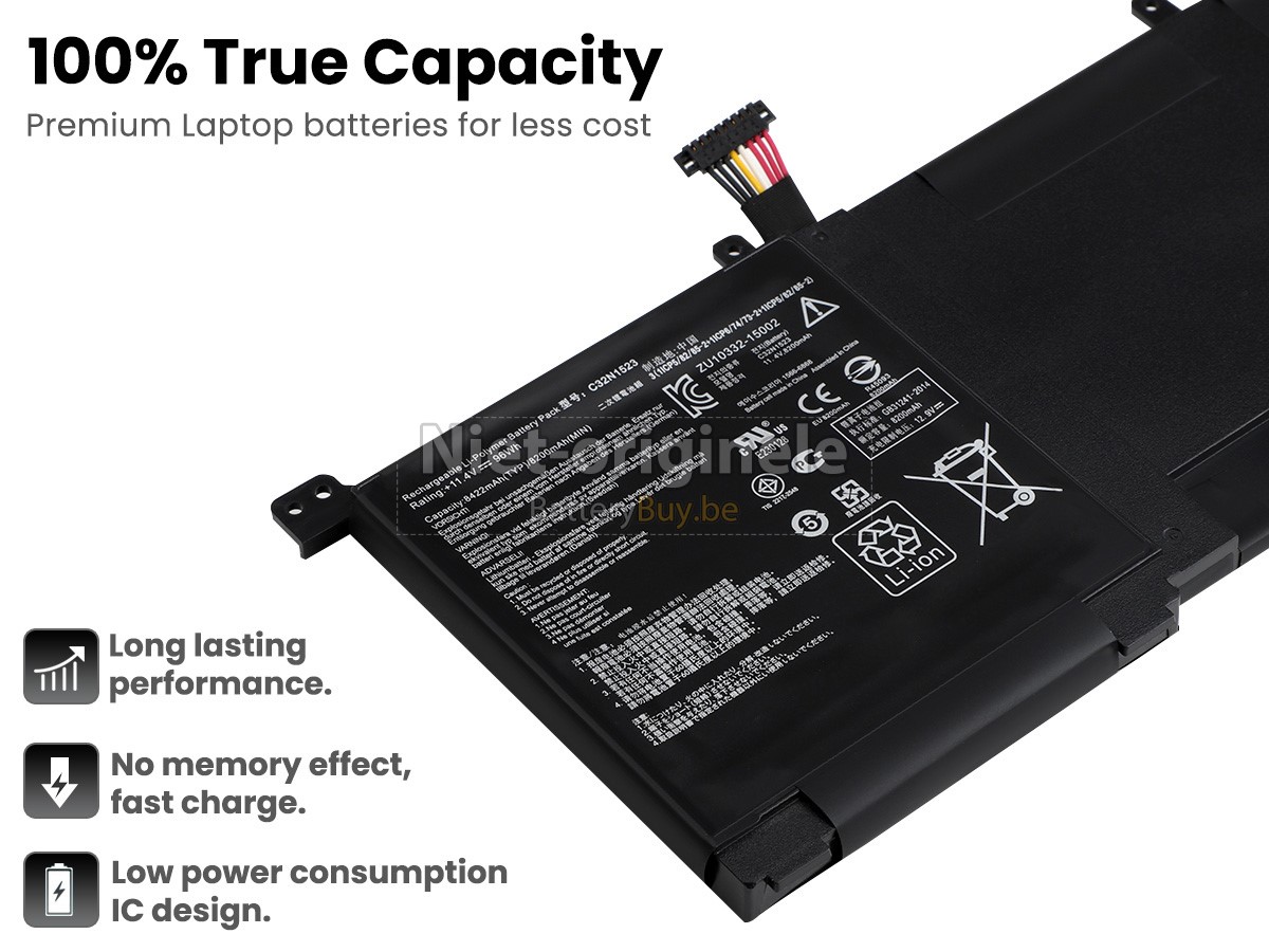 De printplaat heeft een ingebouwde intelligente controlechip, de Asus C41N1524 accu kan werken met snellere acculading, minder vermogensverlies en langere ontlaadtijd.