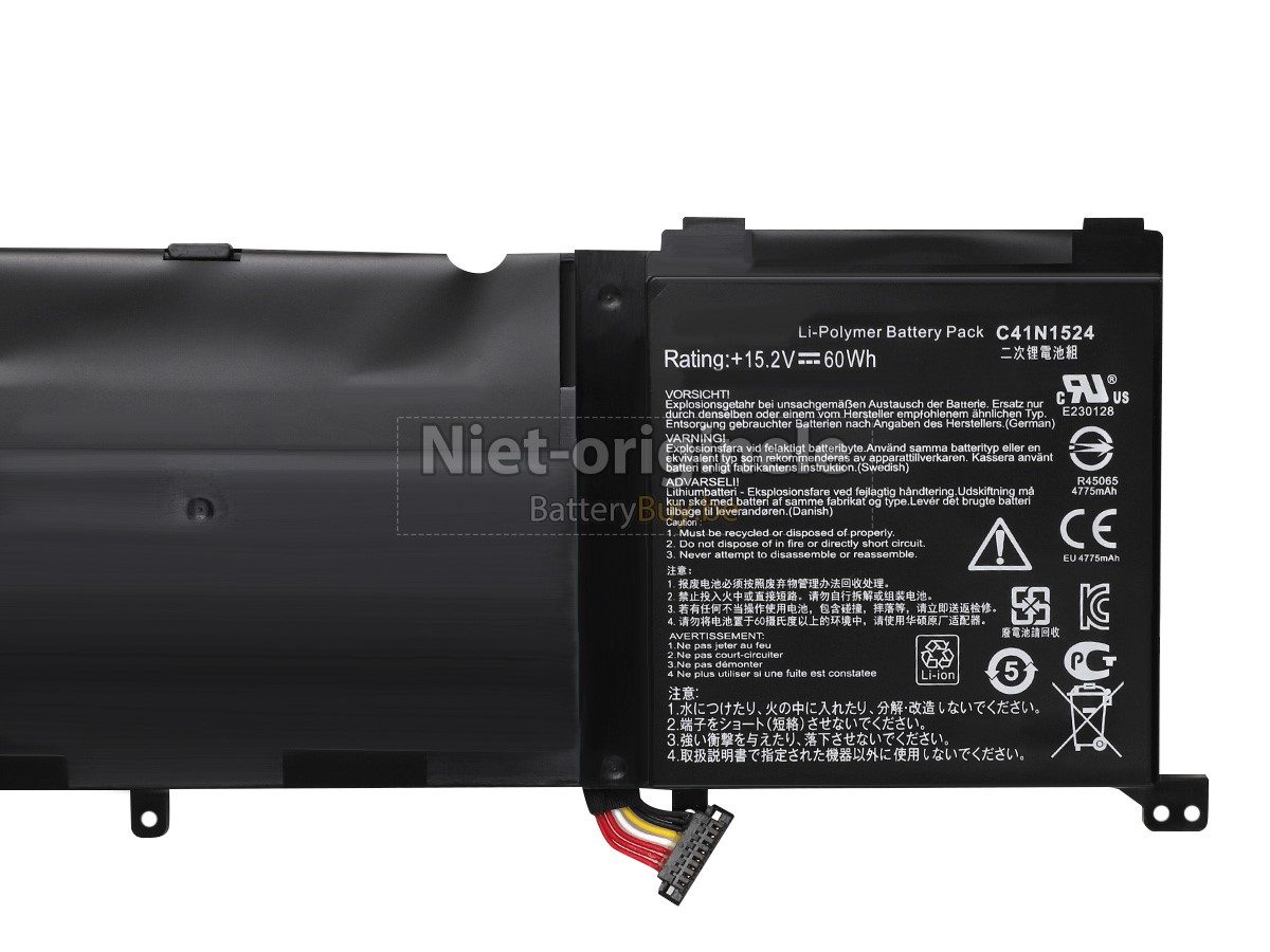 Alle batterijen die we aan de Asus C41N1524 leverde hebben internationaal certificering genoemd (CE, UL, ROHS, ISO, 9001 / 9002).
