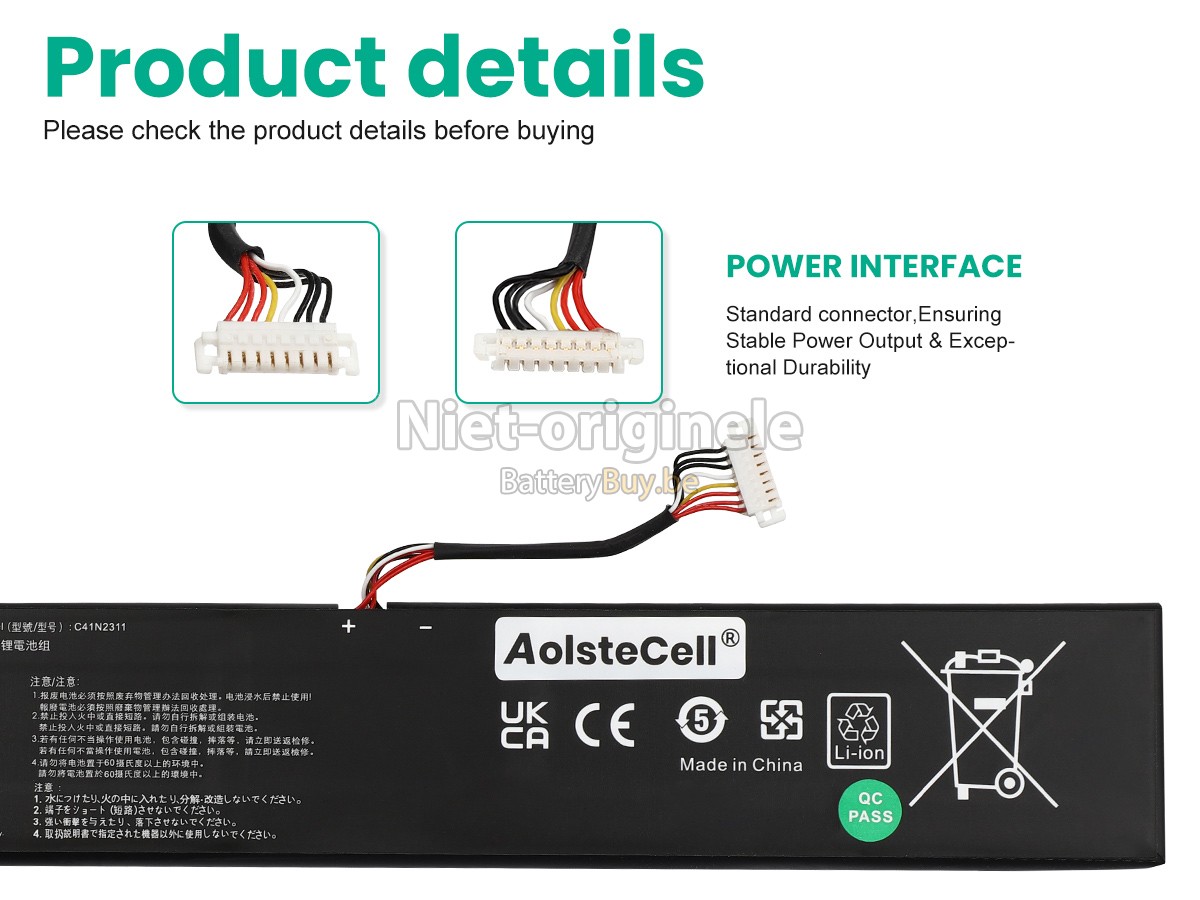 De printplaat heeft een ingebouwde intelligente controlechip, de Asus C41N2311 accu kan werken met snellere acculading, minder vermogensverlies en langere ontlaadtijd.