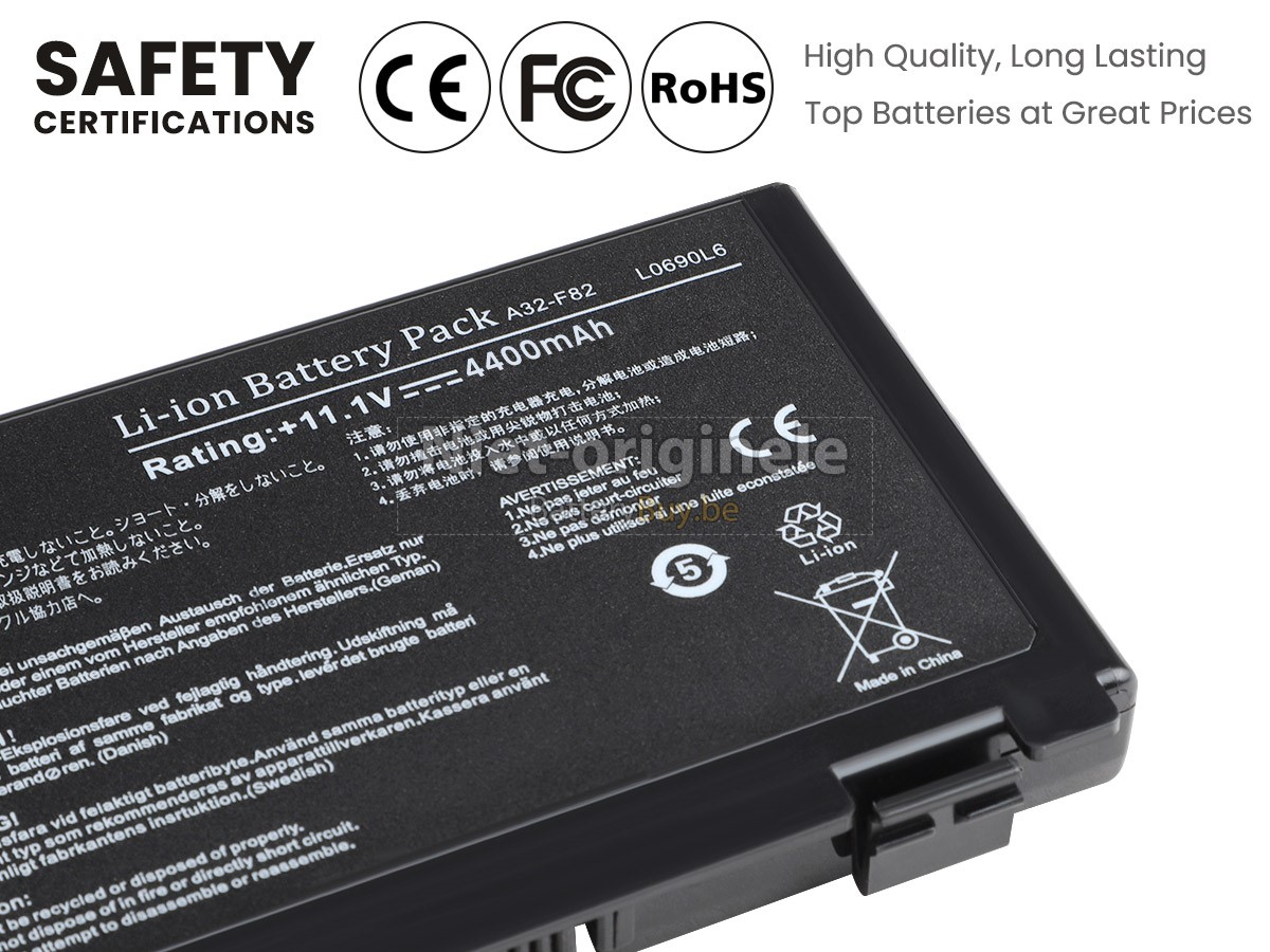 Alle batterijen die we aan de Asus K50 leverde hebben internationaal certificering genoemd (CE, UL, ROHS, ISO, 9001 / 9002).