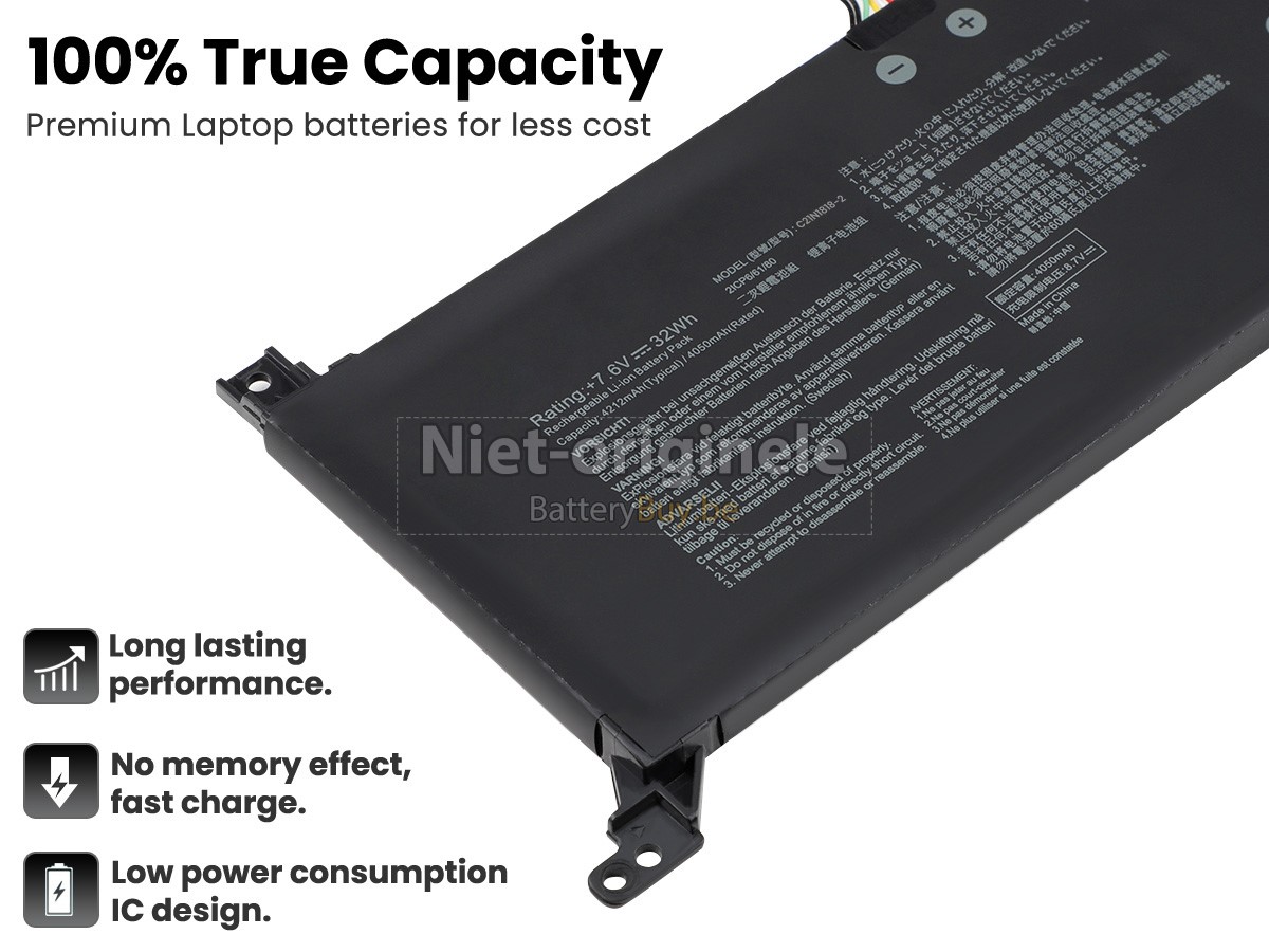 Al onze accu's zijn gloednieuw. We verkopen nooit accu dat oud, tweedehands of gerenoveerd is. We gebruiken allen de beste accucellen en componenten om uw zekerheid en ervaring te beschermen.Is er iets anders tussen jouw Asus VivoBook 14 M409BA accu en die van OEM?