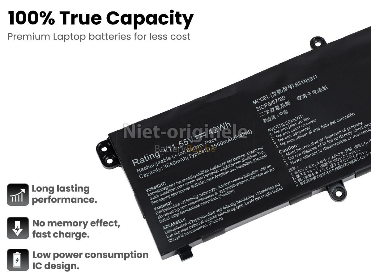 Al onze accu's zijn gloednieuw. We verkopen nooit accu dat oud, tweedehands of gerenoveerd is. We gebruiken allen de beste accucellen en componenten om uw zekerheid en ervaring te beschermen.Is er iets anders tussen jouw Asus VivoBook Flip 14 TP470EA accu en die van OEM?