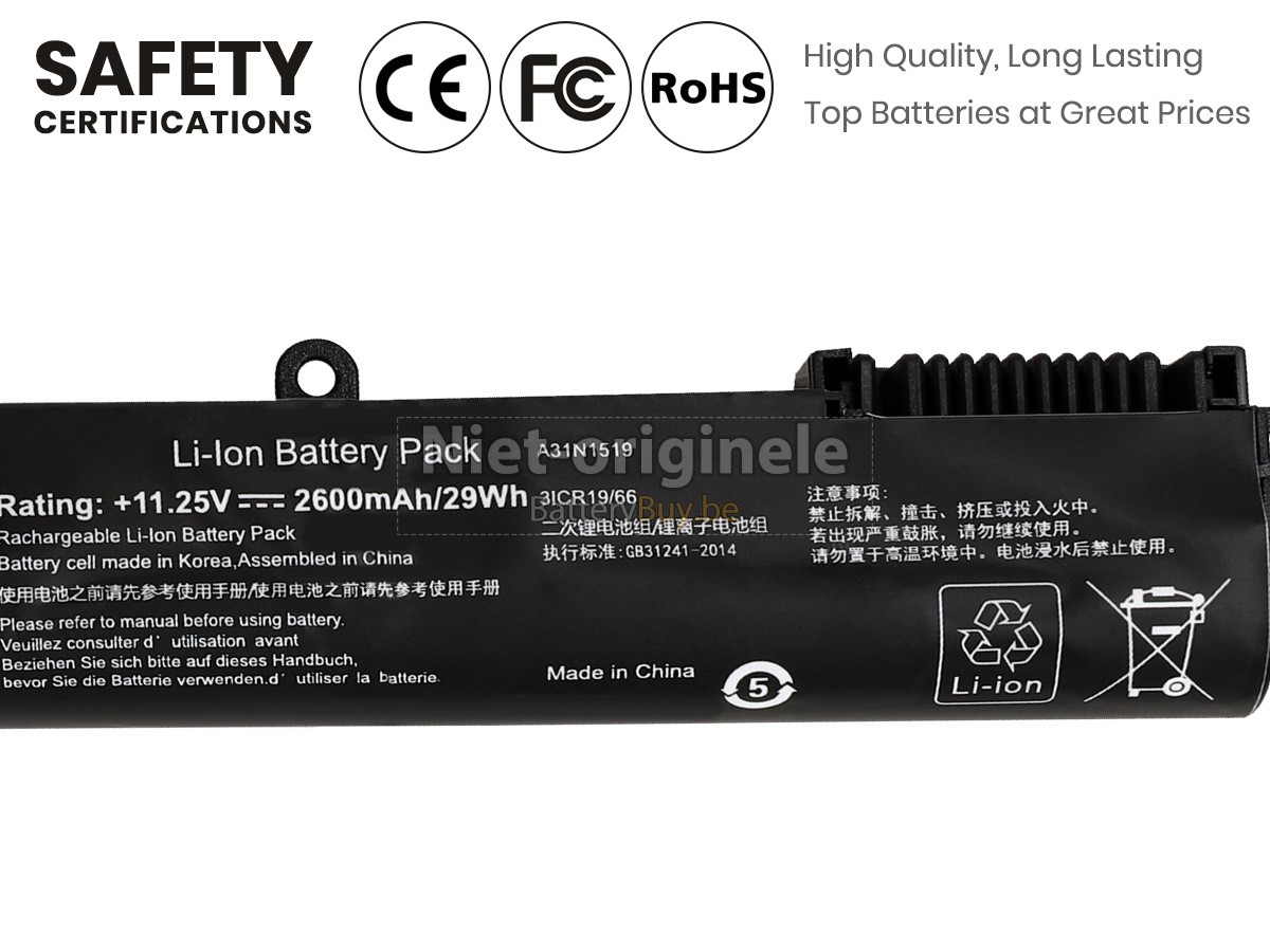 Alle batterijen die we aan de Asus VivoBook K540SC leverde hebben internationaal certificering genoemd (CE, UL, ROHS, ISO, 9001 / 9002).