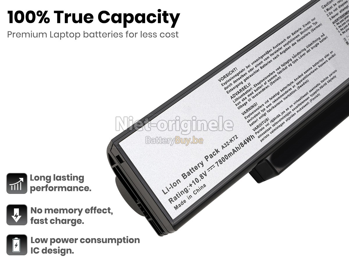 Niets, behalve dat onze Asus X73SI batterij geen merk of label heeft. Consumenten achten de oorspronkelijke laptop accu van Apple, Dell, Toshiba en Hewlett-Packard vaak als de voordelen van een merknaam. Eigenlijk gebruiken ze ook de componenten van een derde partij. We maken onze accu’s eveneens met dezelfde accucellen en printplaat, maar we vervaardigen onze eigen huls en de kosten van de waarde aan het merk verlagen. Daarom consumenten laptop accu van wereldniveau die dezelfde met originele versie is kunnen kopen tegen een veel lage prijs.Kan mijn Asus X73SI laptop accu verschillende capaciteiten gebruiken?