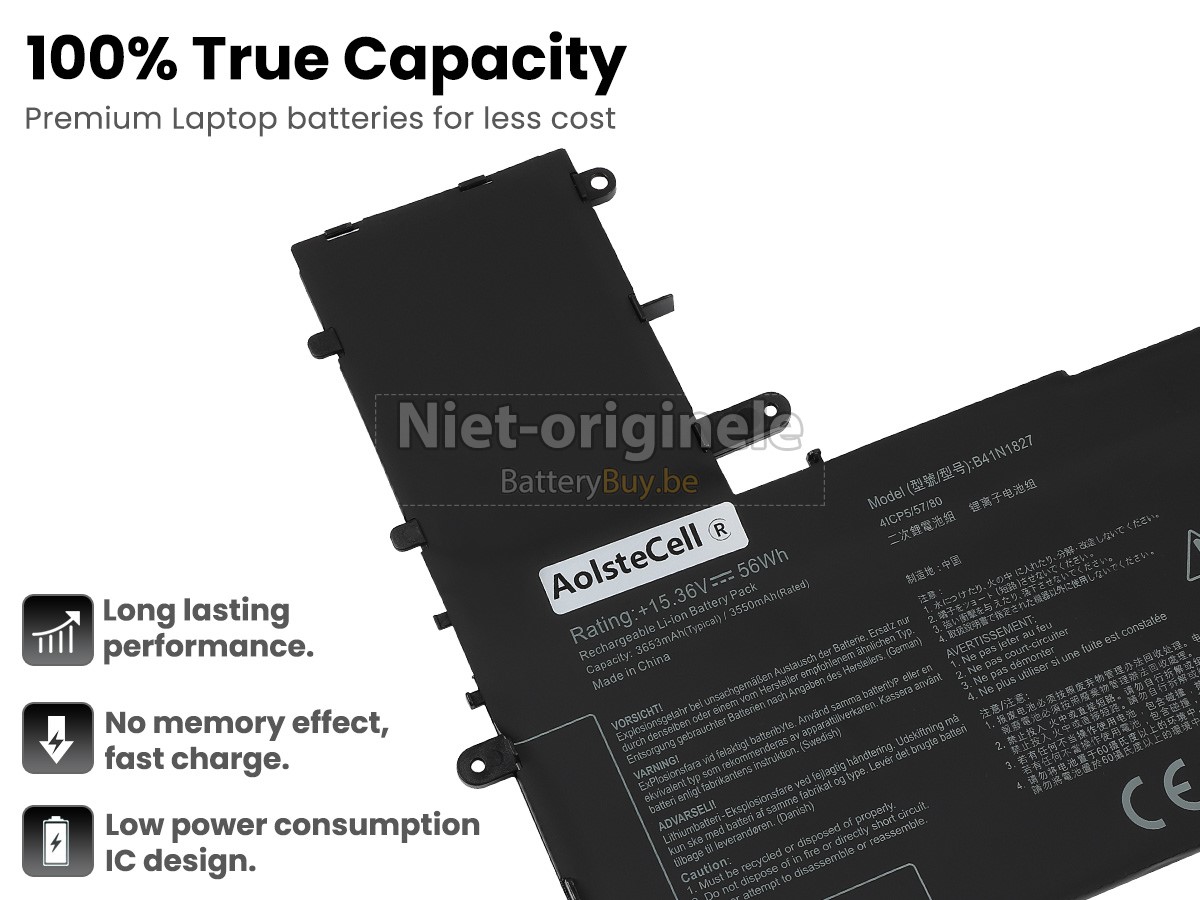 Waarom onze Asus ZenBook Q526FAC accu kunnen maken uw apparaat langer werkt worden? We willen de beste wederverkoper van laptop accu's in België zijn, dus We bieden onze klanten alleen de laptop accu's van beste kwaliteit aan. Asus ZenBook Q526FAC batterij maken gebruik van de superieur lithium-ion-accucellen van topbedrijven zoals Panasonic, Sony, Samsung en Texas Instruments. Dus de prestaties overeenstemmen of even overtreffen met die van originele accu's. Maar de prijs is zeer lager dan die van de originele accu's, want we vervaardigen onze eigen huls en de kosten van de waarde aan het merk verminderen, wat de extra kosten van onze klanten verlaagt.