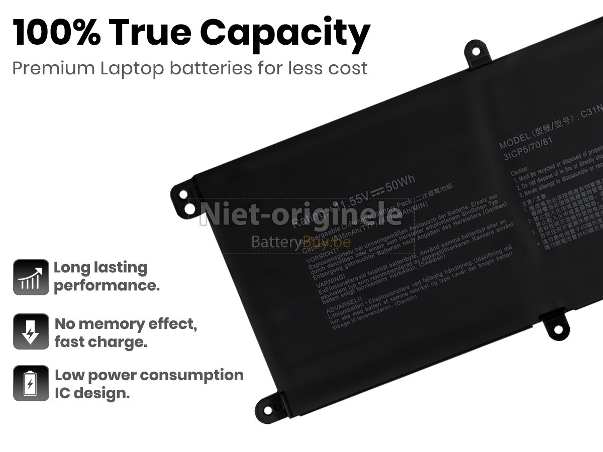 Waarom onze Asus ZenBook UX530UQ accu kunnen maken uw apparaat langer werkt worden? We willen de beste wederverkoper van laptop accu's in België zijn, dus We bieden onze klanten alleen de laptop accu's van beste kwaliteit aan. Asus ZenBook UX530UQ batterij maken gebruik van de superieur lithium-ion-accucellen van topbedrijven zoals Panasonic, Sony, Samsung en Texas Instruments. Dus de prestaties overeenstemmen of even overtreffen met die van originele accu's. Maar de prijs is zeer lager dan die van de originele accu's, want we vervaardigen onze eigen huls en de kosten van de waarde aan het merk verminderen, wat de extra kosten van onze klanten verlaagt.