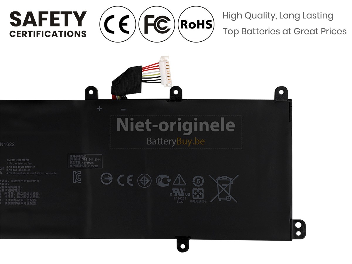 Alle batterijen die we aan de Asus ZenBook UX530UQ leverde hebben internationaal certificering genoemd (CE, UL, ROHS, ISO, 9001 / 9002).