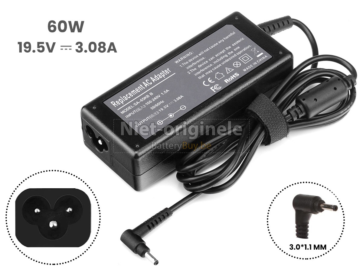 De lijst van compatibiliteits van Asus 19.5V 3.08A 60W 3.0*1.1MM adapter wordt vernieuwing blijven, maar niet opgave van al modellen worden gedaan. Als u niet zeker is van of deze Asus 19.5V 3.08A 60W 3.0*1.1MM adapter geschikt is voor uw apparaat, neemt u contact met ons op en wij helpen u altijd graag.