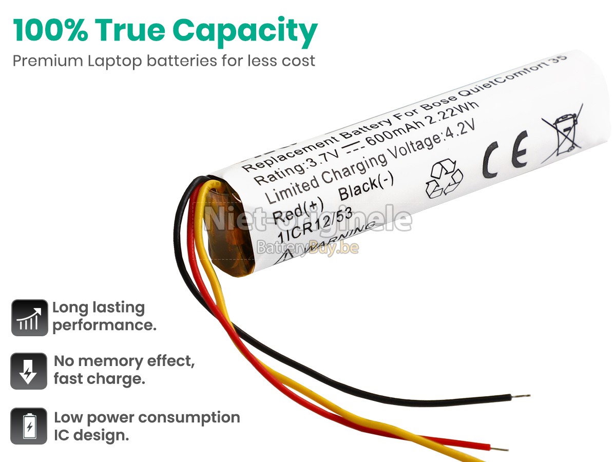 Waarom onze Bose QUIETCOMFORT QC45 accu kunnen maken uw apparaat langer werkt worden? We willen de beste wederverkoper van accu's in België zijn, dus We bieden onze klanten alleen de accu's van beste kwaliteit aan. Bose QUIETCOMFORT QC45 batterij maken gebruik van de superieur lithium-ion-accucellen van topbedrijven zoals Panasonic, Sony, Samsung en Texas Instruments. Dus de prestaties overeenstemmen of even overtreffen met die van originele accu's. Maar de prijs is zeer lager dan die van de originele accu's, want we vervaardigen onze eigen huls en de kosten van de waarde aan het merk verminderen, wat de extra kosten van onze klanten verlaagt.