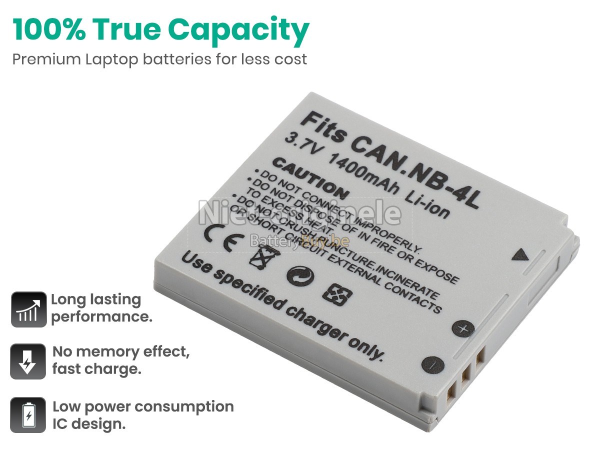 1 Cellen 1400mAh Canon NB-4L Accu Vervangen