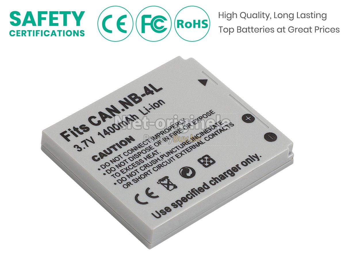 Alle batterijen die we aan de Canon NB-4L leverde hebben internationaal certificering genoemd (CE, UL, ROHS, ISO, 9001 / 9002).