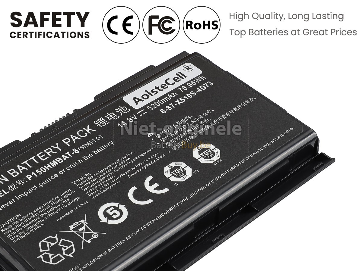8 Cellen 76.96Wh Clevo 6-87-X710S-4J7 Accu Vervangen
