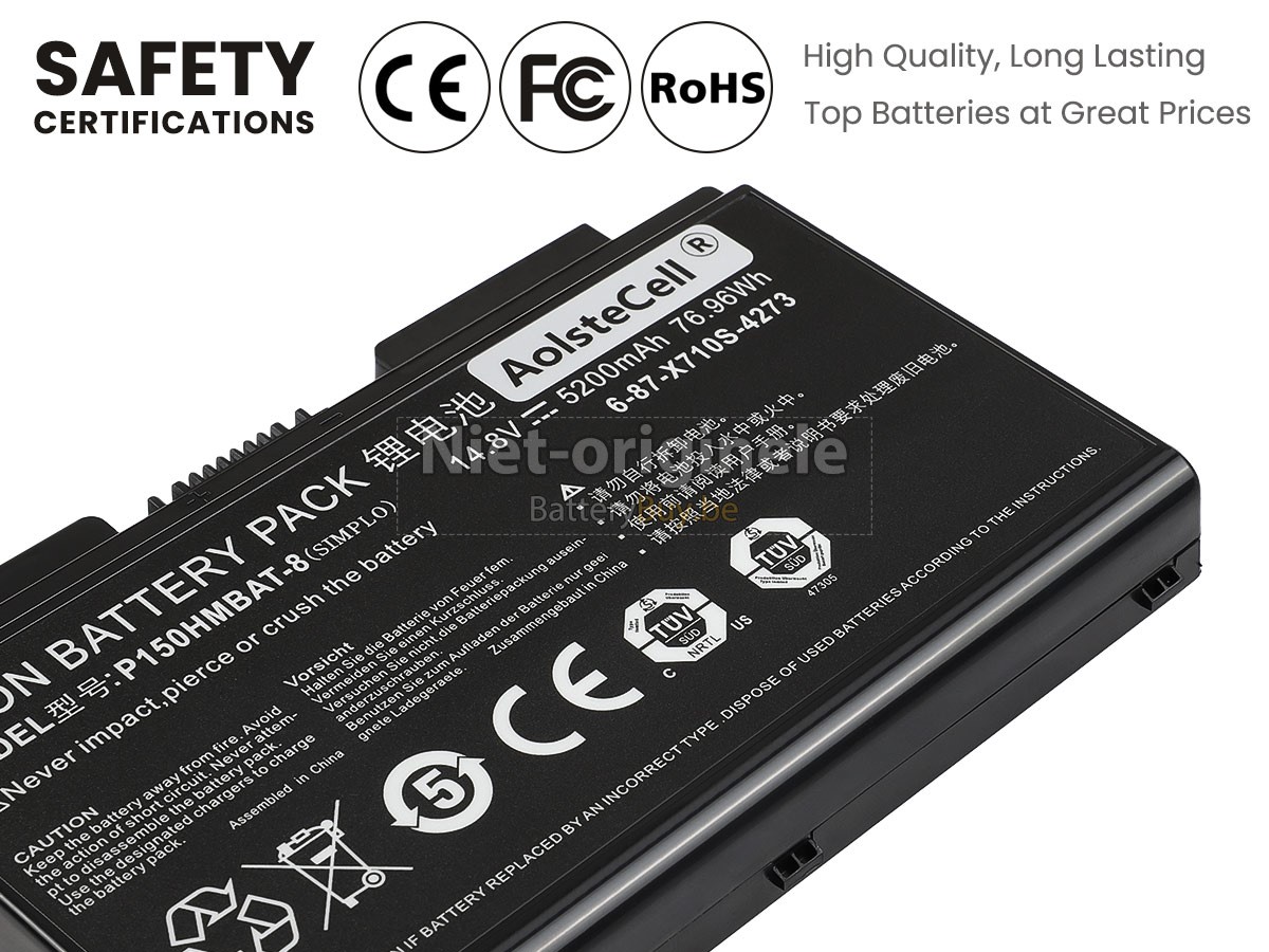 Alle batterijen die we aan de Clevo 6-87-X710S-4J7 leverde hebben internationaal certificering genoemd (CE, UL, ROHS, ISO, 9001 / 9002).
