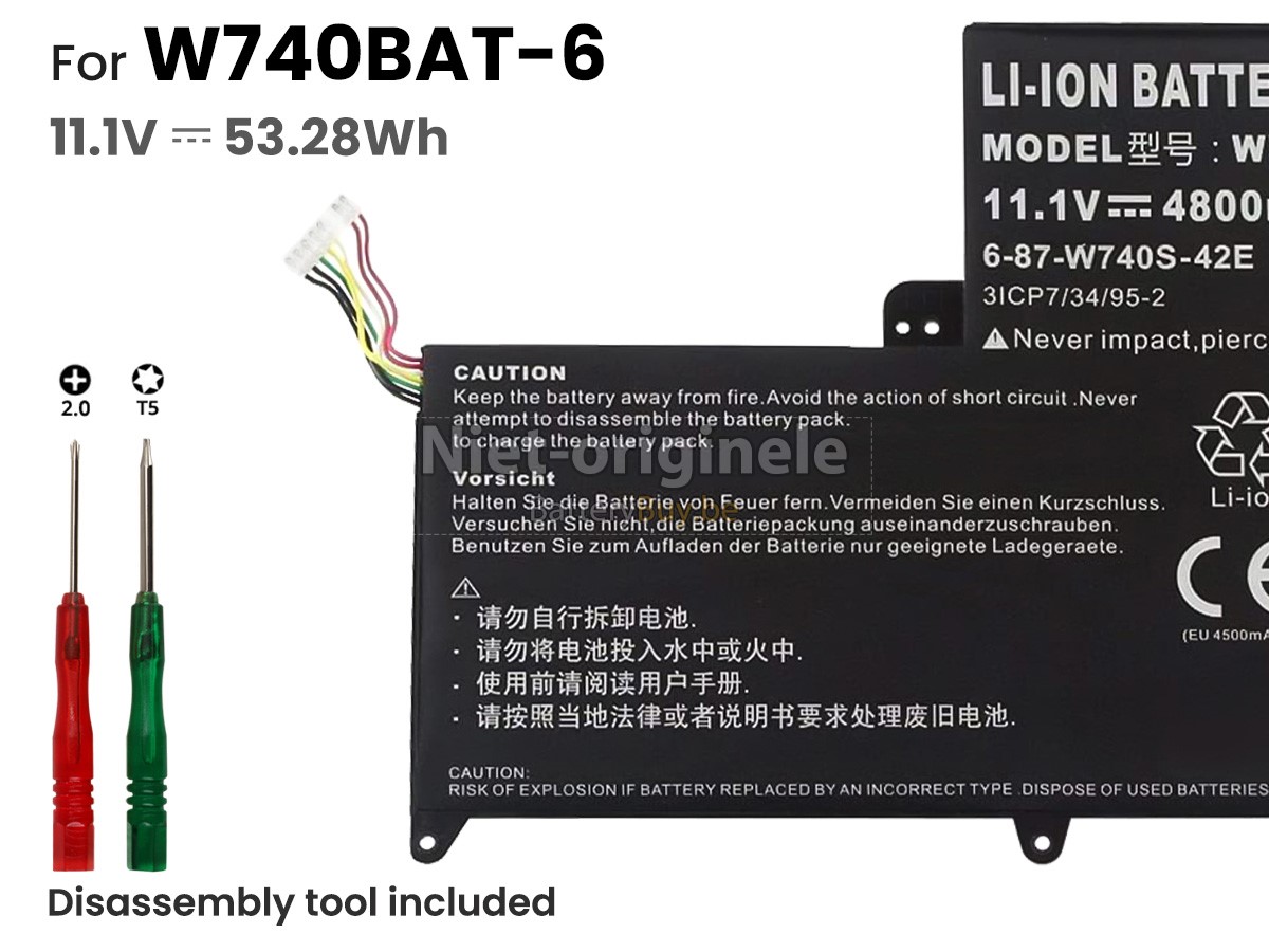 3 Cellen 53.28Wh Clevo W740BAT-6(3ICP7/34/95-2) Accu Vervangen