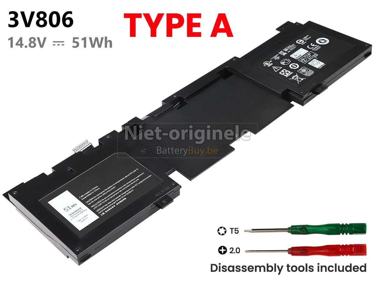 4 Cellen 51Wh Dell 2VMGK Accu Vervangen