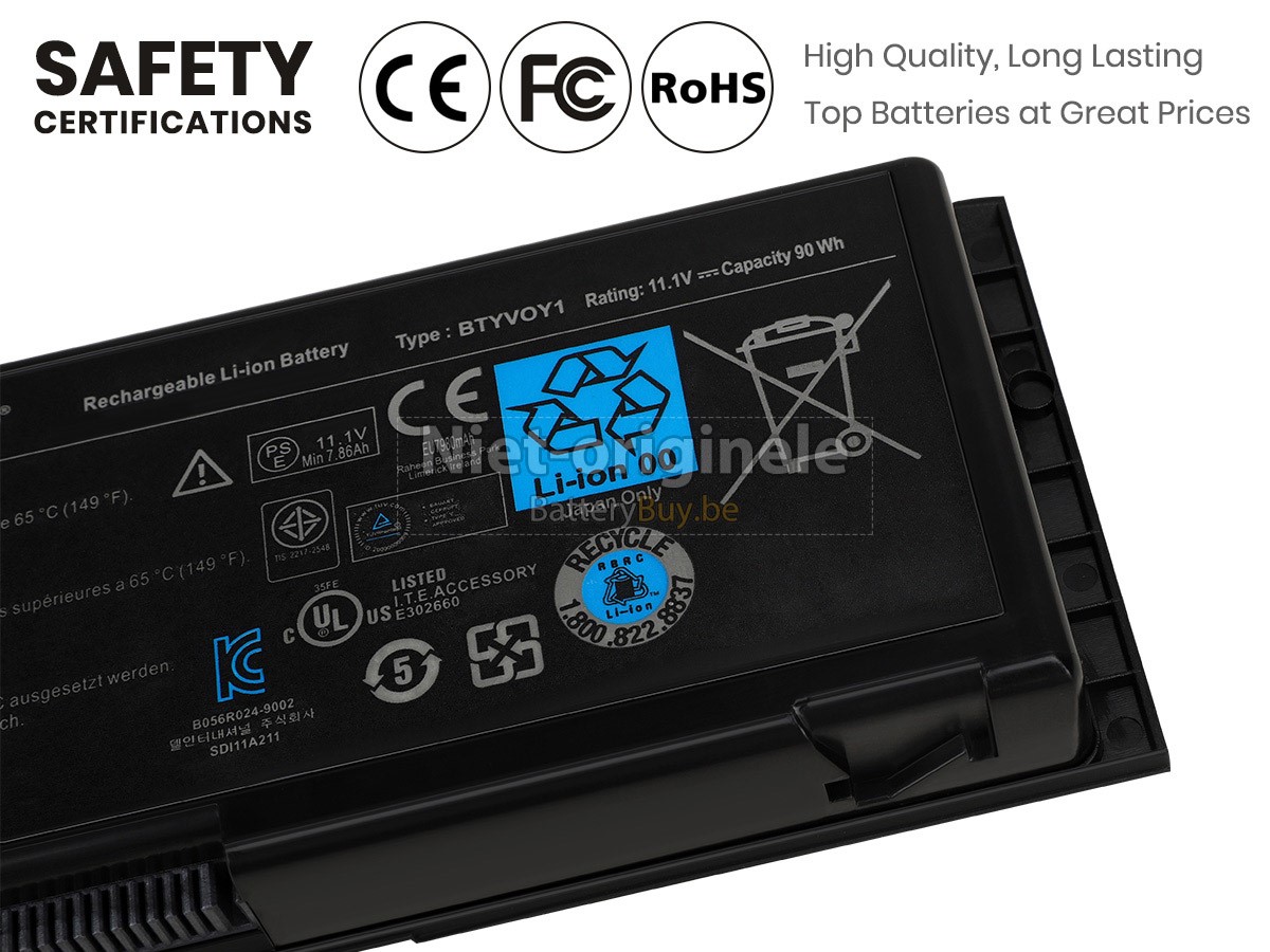 9 Cellen 90Wh Dell BTYVOY1 Accu Vervangen