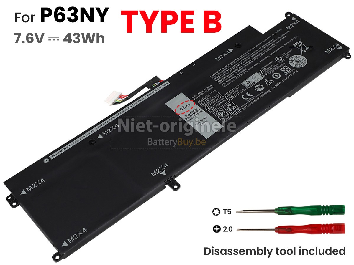 4 Cellen 43Wh Dell P63NY Accu Vervangen