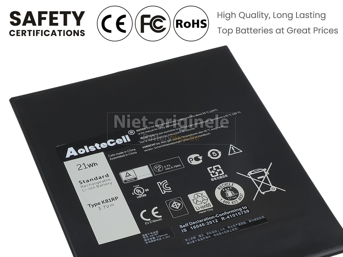 Alle batterijen die we aan de Dell Venue 8 7000 leverde hebben internationaal certificering genoemd (CE, UL, ROHS, ISO, 9001 / 9002).