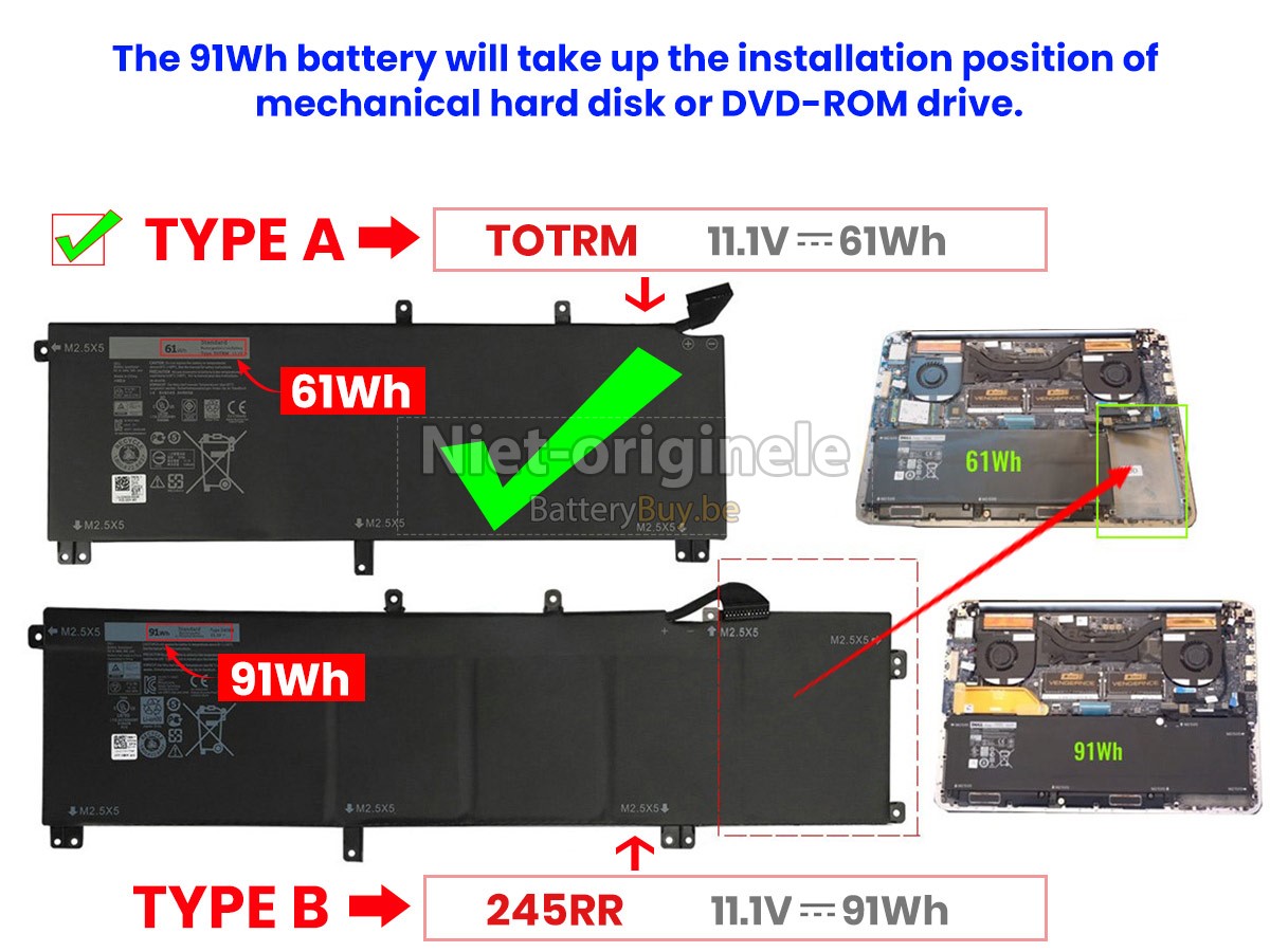 Al onze accu's zijn gloednieuw. We verkopen nooit accu dat oud, tweedehands of gerenoveerd is. We gebruiken allen de beste accucellen en componenten om uw zekerheid en ervaring te beschermen.Is er iets anders tussen jouw Dell XPS 15 9535 accu en die van OEM?