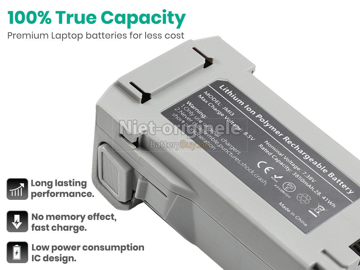 Waarom onze DJI MINI 3 PRO accu kunnen maken uw apparaat langer werkt worden? We willen de beste wederverkoper van accu's in België zijn, dus We bieden onze klanten alleen de accu's van beste kwaliteit aan. DJI MINI 3 PRO batterij maken gebruik van de superieur lithium-ion-accucellen van topbedrijven zoals Panasonic, Sony, Samsung en Texas Instruments. Dus de prestaties overeenstemmen of even overtreffen met die van originele accu's. Maar de prijs is zeer lager dan die van de originele accu's, want we vervaardigen onze eigen huls en de kosten van de waarde aan het merk verminderen, wat de extra kosten van onze klanten verlaagt.