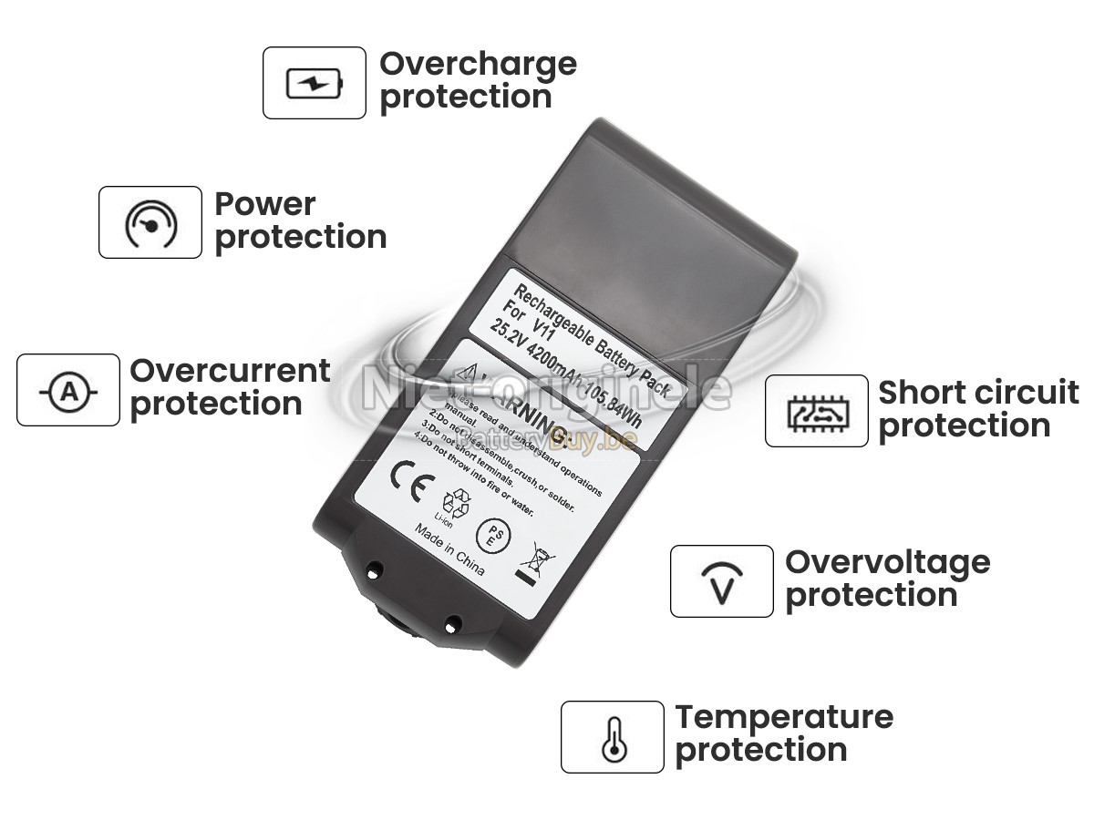 Alle batterijen die we aan de Dyson V11 ABSOLUTE EXTRA CORDLESS VACUUM leverde hebben internationaal certificering genoemd (CE, UL, ROHS, ISO, 9001 / 9002).