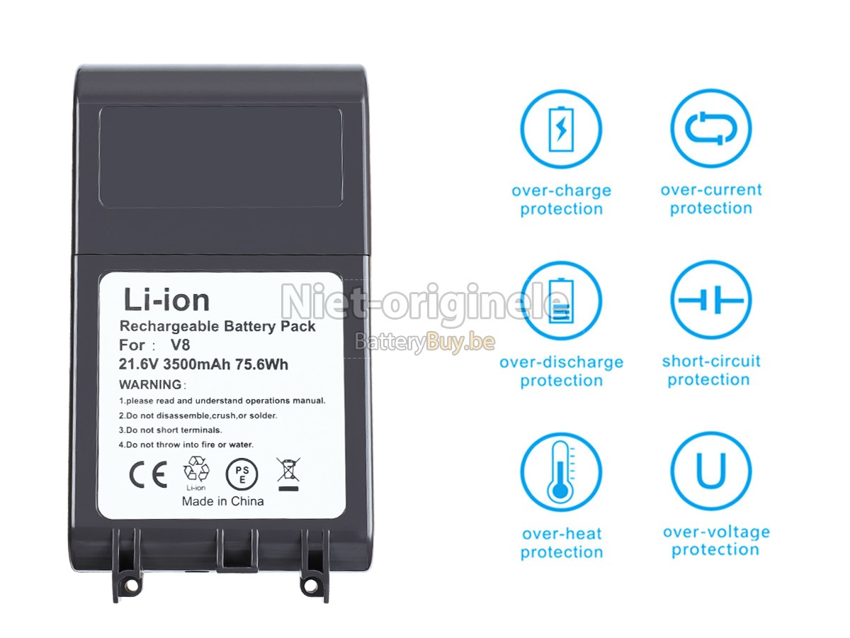 Alle batterijen die we aan de Dyson V8-SV10 ABSOLUTE PRO leverde hebben internationaal certificering genoemd (CE, UL, ROHS, ISO, 9001 / 9002).