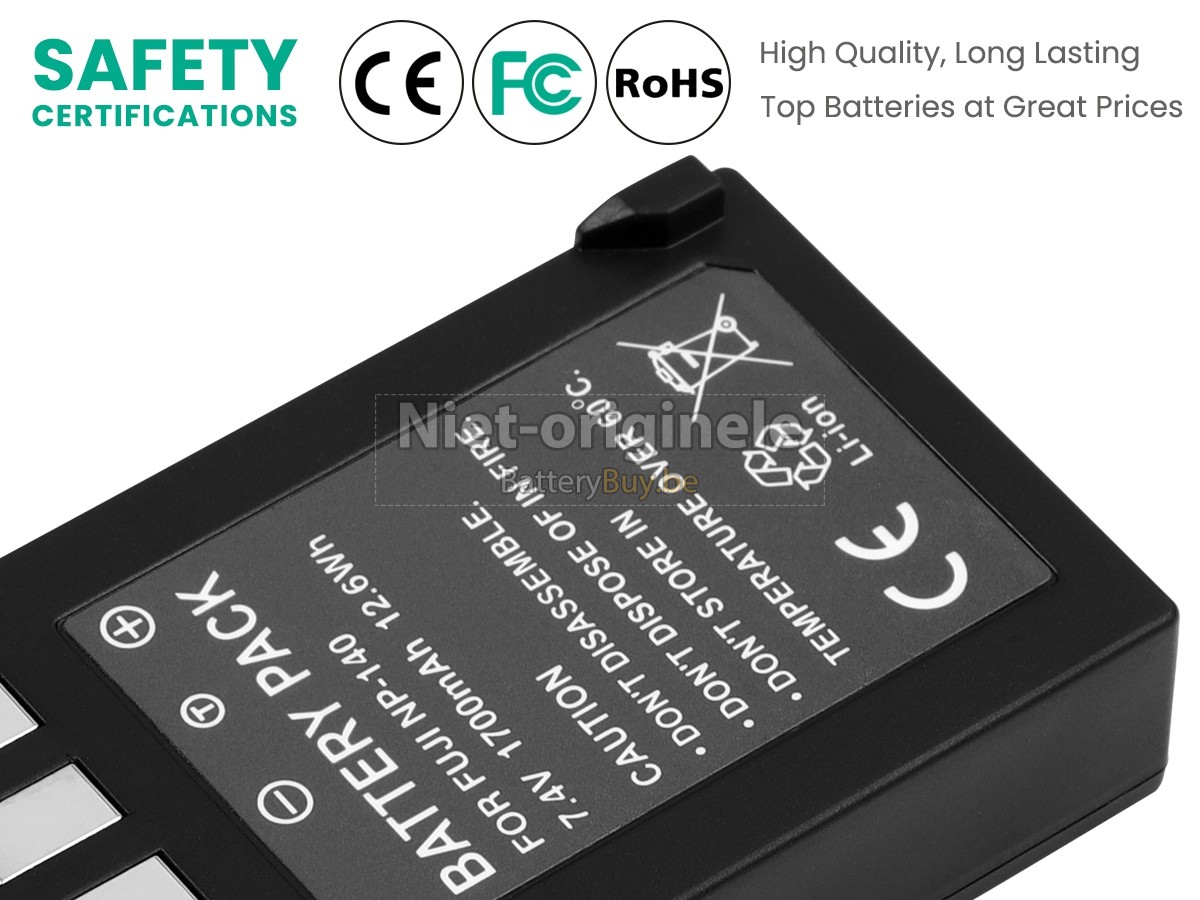 Alle batterijen die we aan de Fujifilm FINEPIX S200FS leverde hebben internationaal certificering genoemd (CE, UL, ROHS, ISO, 9001 / 9002).