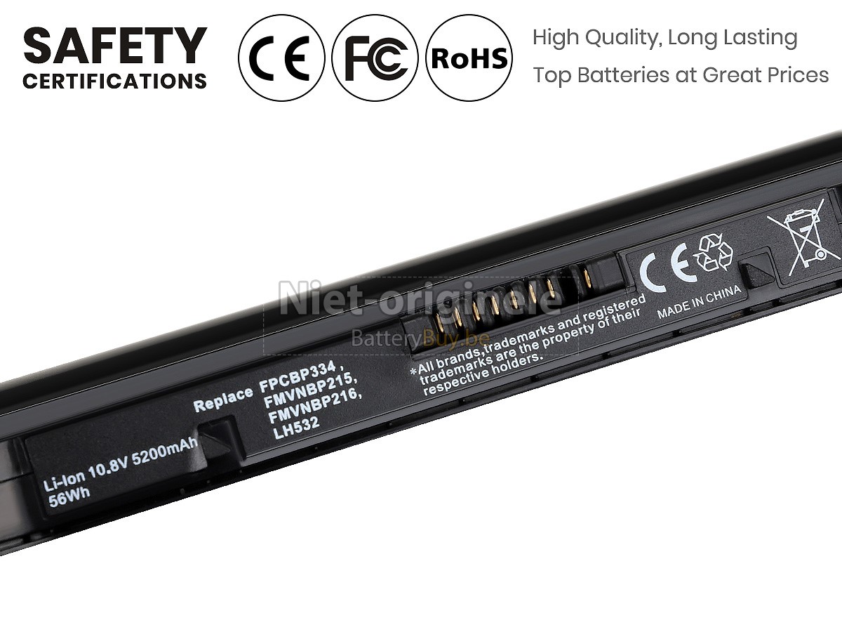 Alle batterijen die we aan de Fujitsu FMVNBP216 leverde hebben internationaal certificering genoemd (CE, UL, ROHS, ISO, 9001 / 9002).