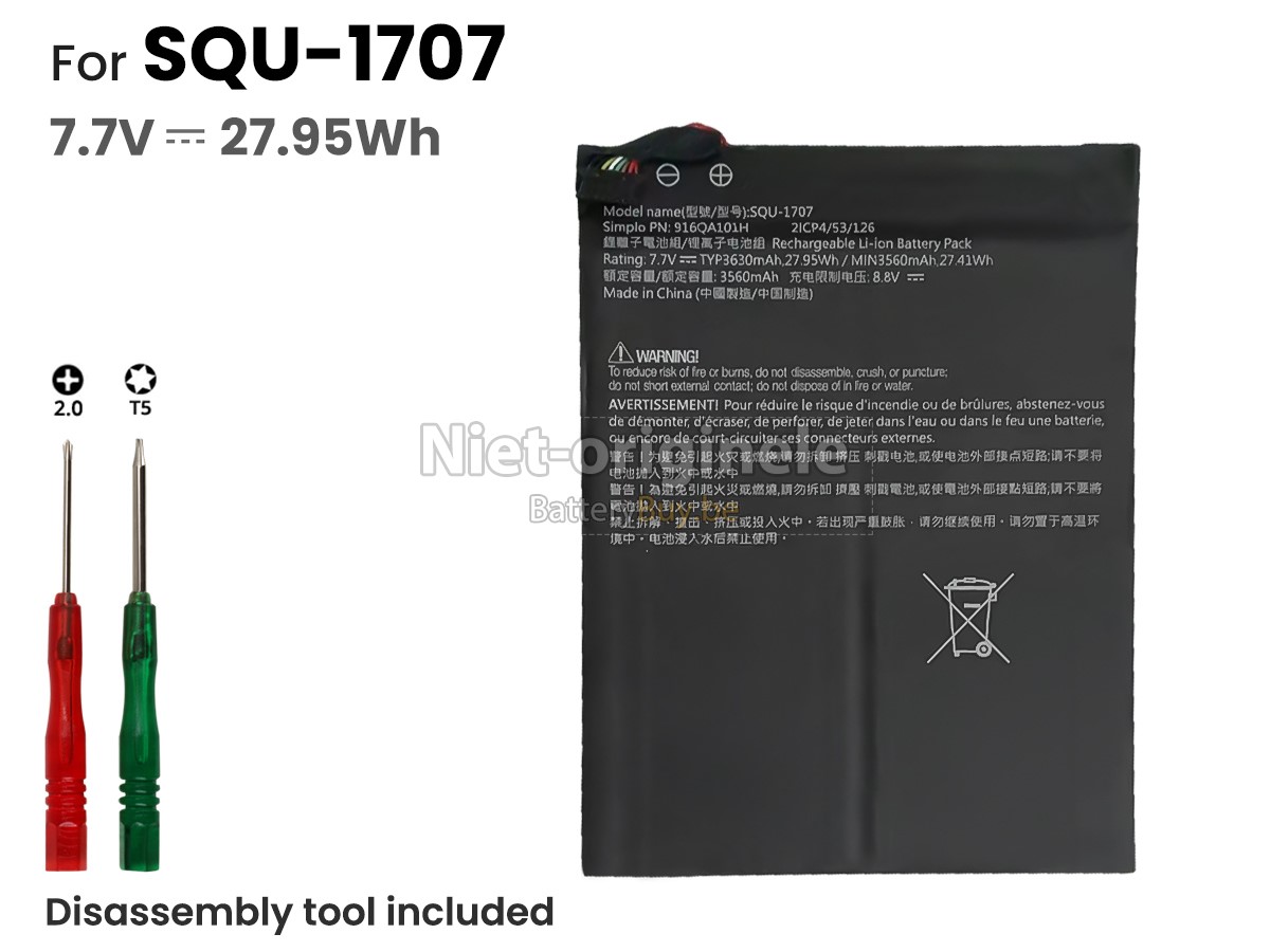 - Capaciteit : 27.95Wh