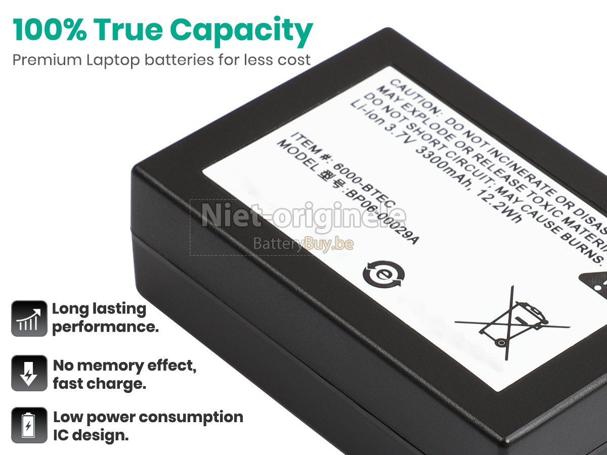 Waarom onze Honeywell 6000-BTEC accu kunnen maken uw apparaat langer werkt worden? We willen de beste wederverkoper van accu's in België zijn, dus We bieden onze klanten alleen de accu's van beste kwaliteit aan. Honeywell 6000-BTEC batterij maken gebruik van de superieur lithium-ion-accucellen van topbedrijven zoals Panasonic, Sony, Samsung en Texas Instruments. Dus de prestaties overeenstemmen of even overtreffen met die van originele accu's. Maar de prijs is zeer lager dan die van de originele accu's, want we vervaardigen onze eigen huls en de kosten van de waarde aan het merk verminderen, wat de extra kosten van onze klanten verlaagt.