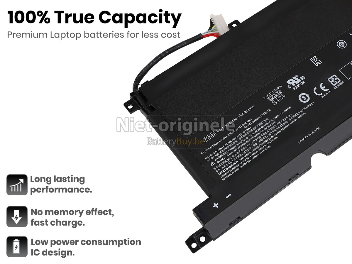 Alle batterijen die we aan de HP Pavilion Gaming 15-EC1023AX leverde hebben internationaal certificering genoemd (CE, UL, ROHS, ISO, 9001 / 9002).
