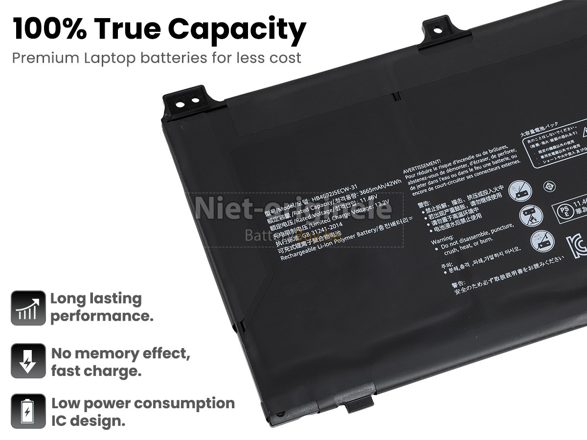 Al onze accu's zijn gloednieuw. We verkopen nooit accu dat oud, tweedehands of gerenoveerd is. We gebruiken allen de beste accucellen en componenten om uw zekerheid en ervaring te beschermen.Is er iets anders tussen jouw Huawei MATEBOOK D15 (2020) accu en die van OEM?