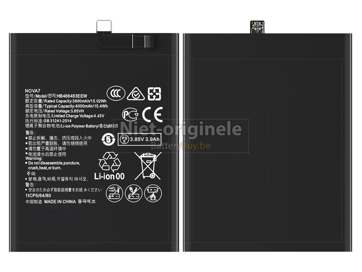 Alle batterijen die we aan de Huawei P40 LITE 5G CDY-NX9A leverde hebben internationaal